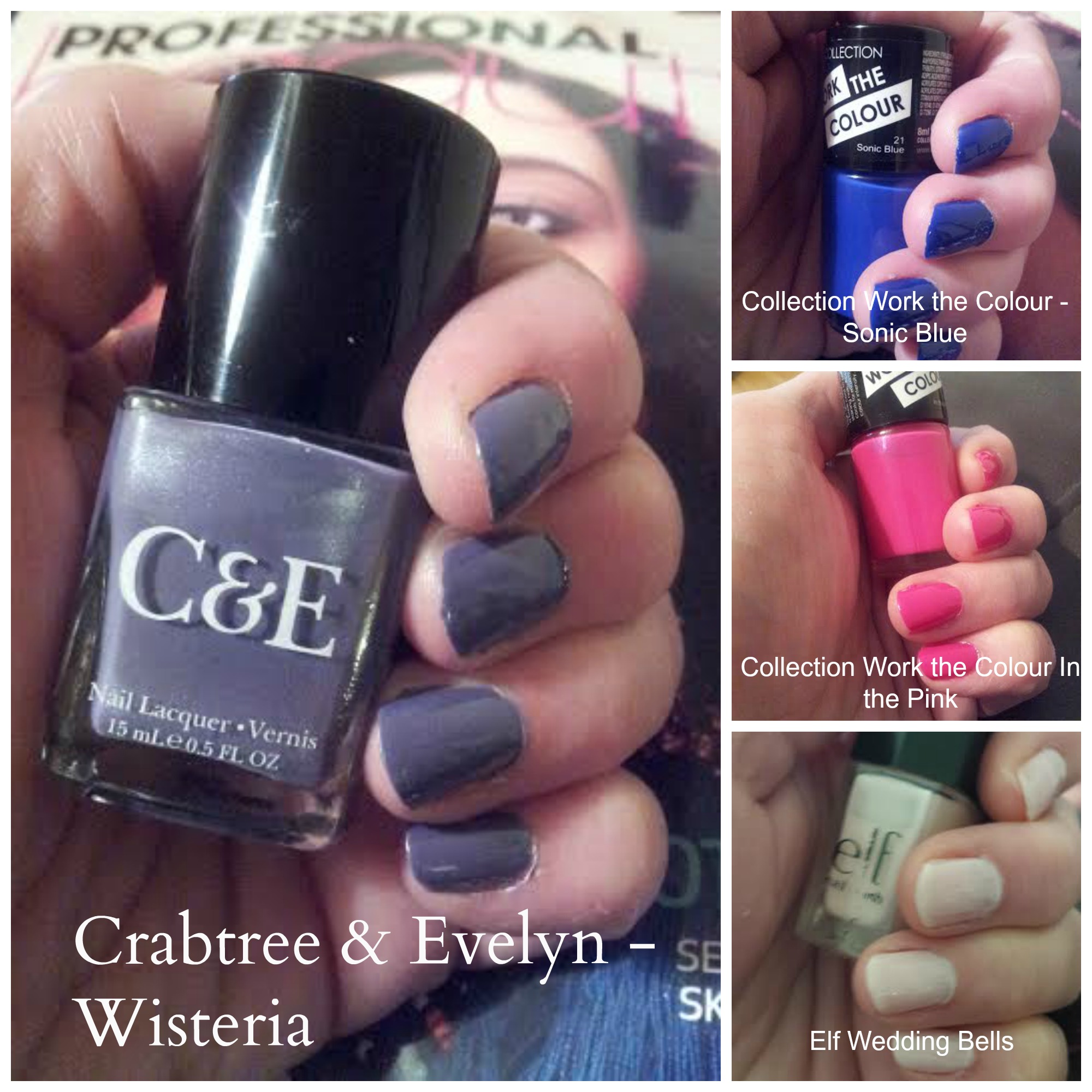 The other three colours I got thanks to @northerngirlHB who gave us such gorgeous goodie bags at the London Blogger Meet Up. The top right is Collection Work the Colour in Sonic Blue and the middle right is Collection Work the Colour in In the Pink. Both of these have amazing coverage and even with my poor application, I managed to get them to last for 3 days without chipping. They cost just £1.99 each.