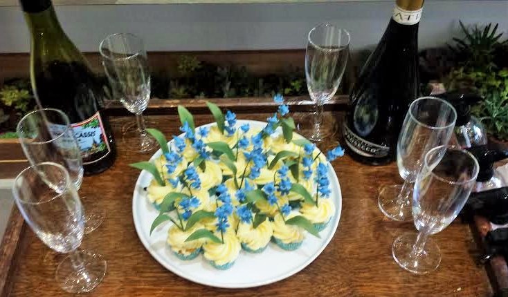 We were welcomed in time-honoured blogger style with glasses of fizz and cupcakes in keeping with the bluebell theme. Gorgeous! I was beginning to be in the mood to get involved with all things floral!